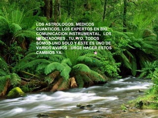 El documento habla sobre la necesidad de controlar nuestros pensamientos negativos y enfocarnos en pensamientos positivos, ya que estamos adquiriendo más poder mental. Si continuamos pensando en tragedias y catástrofes, especialmente en relación con el año 2012, esto podría manifestar eventos negativos. En cambio, debemos ser honestos con nosotros mismos, hacer lo que nos hace felices y enfocarnos en sentir amor, paz y felicidad para crear un futuro mejor.