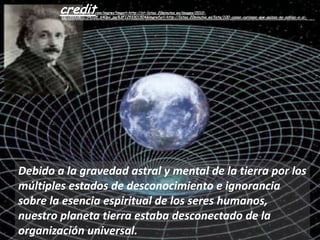 El documento habla sobre una universidad llamada Universidad de la Confederación del Espíritu que ofrece conocimientos espirituales, cósmicos y universales a través de clases virtuales. Su objetivo es ayudar a los estudiantes a vivir de acuerdo a las leyes del universo y prepararlos para los cambios que están ocurriendo en la Tierra y el universo. La metodología incluye clases, monitoreo, talleres y laboratorios prácticos para la transformación personal.