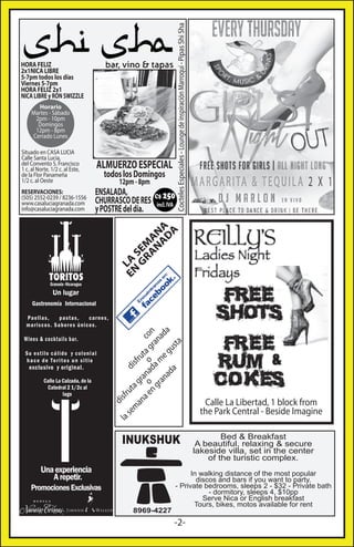 Este documento resume los eventos y actividades que tendrán lugar en Granada, Nicaragua del viernes 20 al jueves 26 de diciembre de 2013, incluyendo conciertos, obras de teatro, partidos de béisbol, ferias, exposiciones y fiestas nocturnas.