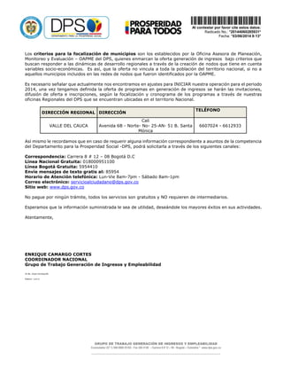 El documento describe las funciones y actividades del Grupo de Trabajo de Generación de Ingresos y Empleabilidad del Departamento para la Prosperidad Social de Colombia. El grupo trabaja para promover el ingreso y empleo de la población vulnerable a través de programas de formación, emprendimiento y atención diferencial. Implementa tres líneas de atención: formación y empleabilidad, área de negocio propio y enfoque diferencial. Los programas se ofrecen en municipios focalizados según criterios socioeconómicos, a través de