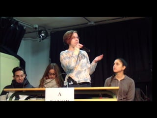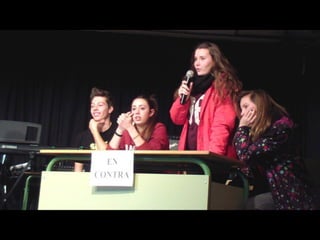 Este documento resume los resultados de un concurso de debates celebrado en el IES La Madraza entre el 9 y 10 de febrero de 2015. Las clases ganadoras fueron 2oESO A, 3oESO B y 1oBachillerato B. Se enumeran los representantes de cada clase que participaron en los debates.