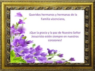 El documento resume las reflexiones del Superior General de la Congregación de la Misión sobre las virtudes de la reconciliación, la paz y la humildad durante la Cuaresma. Visitas a Corea del Sur, Japón, Mauritania y Túnez le mostraron cómo las Hijas de la Caridad practican estas virtudes de forma humilde al servir a los pobres. Insta a la Familia Vicenciana a cultivar internamente estas virtudes para fortalecer sus corazones y servir mejor.