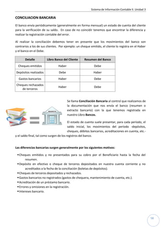 1) El documento habla sobre el arqueo de caja, la conciliación bancaria y los derechos de cobro de una empresa. El arqueo de caja consiste en contar el dinero en efectivo y compararlo con el saldo contable, realizando ajustes si hay diferencias. La conciliación bancaria implica comparar el extracto bancario con el libro de cuentas para identificar diferencias.