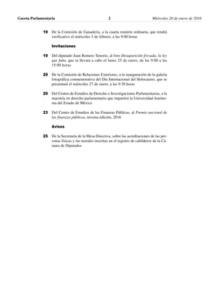 1) Convoca a varias reuniones de comisiones del Congreso durante la semana del 20 de enero de 2016.