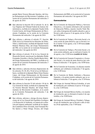 Este documento presenta comunicaciones de varios gobiernos estatales en México respondiendo a puntos de acuerdo de la Cámara de Diputados. También incluye información sobre iniciativas legislativas recibidas, convocatorias a reuniones de comisiones, y eventos de grupos parlamentarios de amistad.