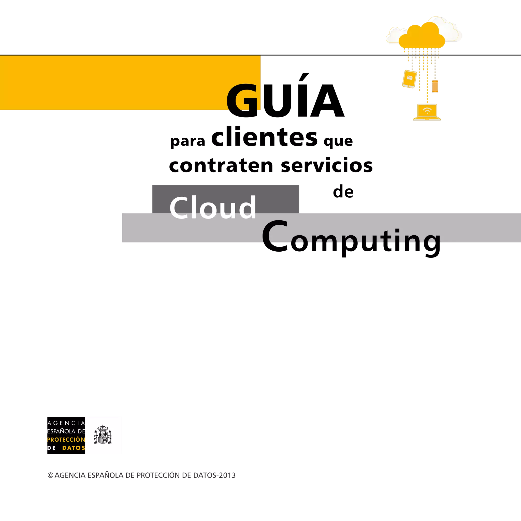 Este documento proporciona una guía sobre computación en la nube para clientes que contraten servicios. Explica brevemente qué es la computación en la nube, los actores involucrados, los tipos de modelos de nube, las modalidades de servicios y algunos riesgos y consideraciones de protección de datos para los clientes.