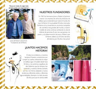 Oriflame celebra su 50° aniversario como una de las principales compañías de cosméticos a nivel mundial, destacando su compromiso con la calidad y la satisfacción del cliente. El catálogo incluye productos de edición especial en honor a esta ocasión, reflejando la evolución de la marca y su adaptación a nuevas tendencias. La compañía invita a celebrar juntos otros 50 años de éxito, ofreciendo una colección especial de productos diseñados para resaltar la belleza individual.