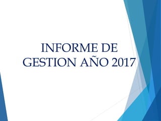 Este documento resume el informe de gestión de 2017 de la Institución Educativa Técnica Industrial Humberto Raffo Rivera. Los ingresos han disminuido los últimos 5 años debido a la reducción en el número de estudiantes. En 2017, los ingresos fueron de $188 millones, la mayor parte proveniente de transferencias del gobierno. Los egresos en 2017 fueron de $165 millones, el 70% invertido en gastos de inversión como dotación para talleres, mejoramiento de infraestructura y adquisición de equipos. El balance al finalizar 2017 fue