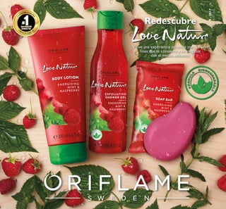 El documento presenta la nueva línea de productos Love Nature, que se enfoca en la sostenibilidad y el uso de ingredientes naturales, con fórmulas biodegradables y sin siliconas. Incluye una variedad de productos para el cuidado del cabello y la piel, promoviendo la belleza responsable y el bienestar ambiental. También se ofrecen promociones y precios especiales para incentivar su compra.