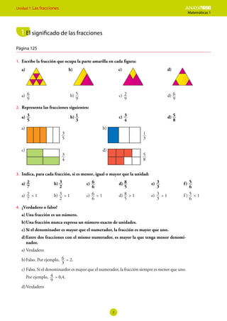 El documento aborda el tema de las fracciones en matemáticas, comenzando con su representación en el antiguo Egipto y seguido por diversas actividades y ejercicios para practicar la comprensión de fracciones, su significado, equivalencias, y su transformación a decimales. Incluye ejemplos de cálculo de fracciones en situaciones cotidianas, así como reflexiones sobre su uso. El documento está diseñado para enseñar la relación entre fracciones y su aplicación práctica en la resolución de problemas matemáticos.