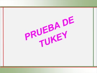 Este documento presenta tres pruebas estadísticas comúnmente usadas para comparar tratamientos en un diseño experimental: la prueba de la diferencia mínima significativa (DMS), la prueba de rangos múltiples de Duncan y la prueba de Tukey. Explica los procedimientos para aplicar cada prueba y comparar las medias de los tratamientos para determinar si son estadísticamente iguales o diferentes.