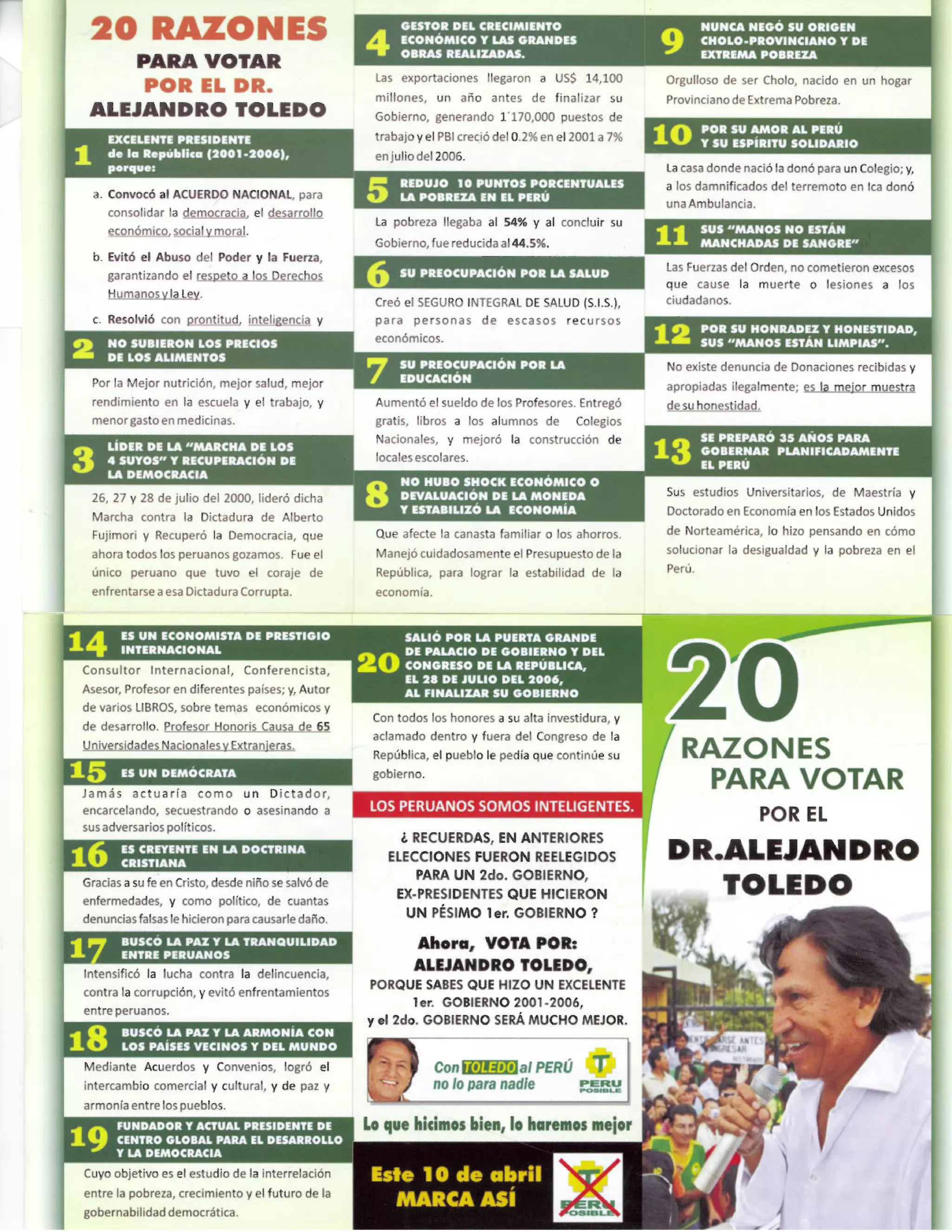 20 razones para votar por a toledo como presidente del perú en las próximas e...