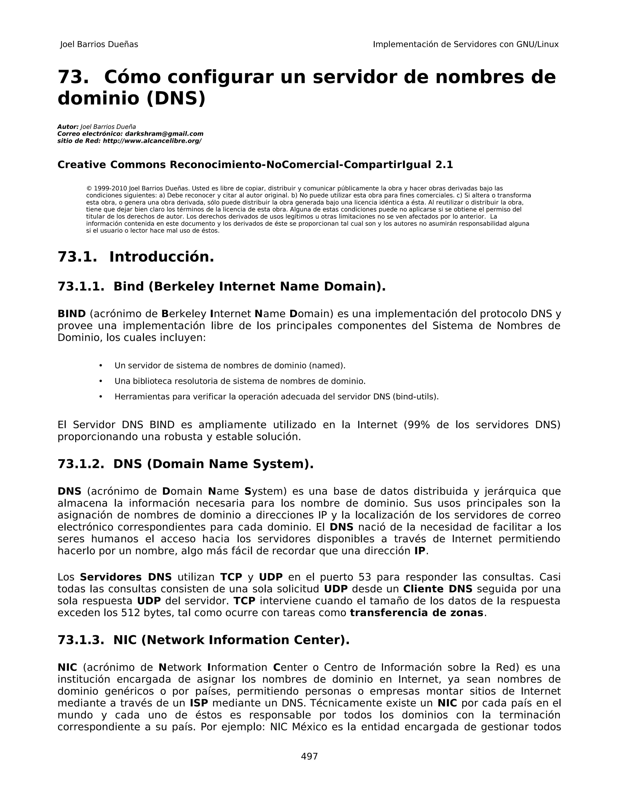 El documento describe cómo configurar un servidor DNS. Explica que BIND es el software más comúnmente usado para implementar servidores DNS. Detalla los componentes clave de DNS como clientes DNS, servidores DNS maestros y esclavos, y zonas de autoridad. Además, explica conceptos como FQDN y los diferentes tipos de registros DNS como A, AAAA, CNAME y MX.