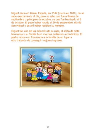 Miguel de Cervantes Saavedra nació en España en 1547 y murió en 1616. Tuvo una educación en un colegio de jesuitas a pesar de provenir de una familia de bajos recursos económicos. Sirvió como soldado y fue herido en la batalla de Lepanto en 1571. Publicó su obra maestra Don Quijote de la Mancha en dos partes, en 1605 y 1615, la cual rápidamente se convirtió en una de las obras literarias más influyentes de todos los tiempos. A pesar del éx