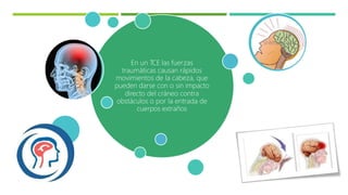 El documento describe el manejo del trauma craneoencefálico (TCE). Explica que el TCE puede causar lesiones primarias y secundarias, y es importante monitorear al paciente para detectar posibles lesiones secundarias. También describe cómo evaluar la gravedad del TCE usando la escala de Glasgow y los pasos para estabilizar y tratar a un paciente con TCE leve, moderado o severo.