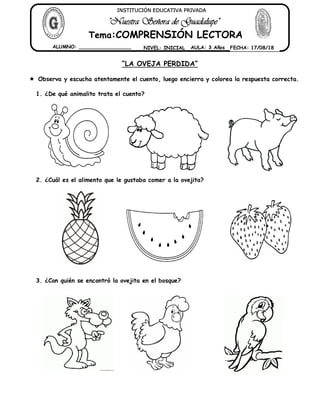 Observa y escucha atentamente el cuento, luego encierra y colorea la respuesta correcta.