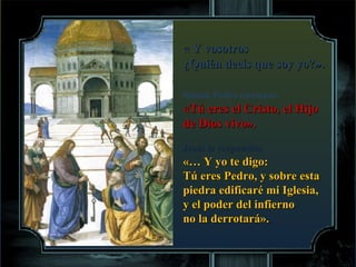 El documento discute la muerte del Papa Juan Pablo II como un fenómeno global colectivo. Los autores argumentan que su muerte produjo una "explosión de energía social" impulsada por fuerzas como el redescubrimiento de la religión, el poder de los rituales colectivos, la forma en que el Papa vivió el sufrimiento, y su carisma y relación con los medios de comunicación. El documento también analiza las palabras de Jesús a Pedro sobre las llaves del reino de los cielos y el poder de atar y desatar, y cómo esto no