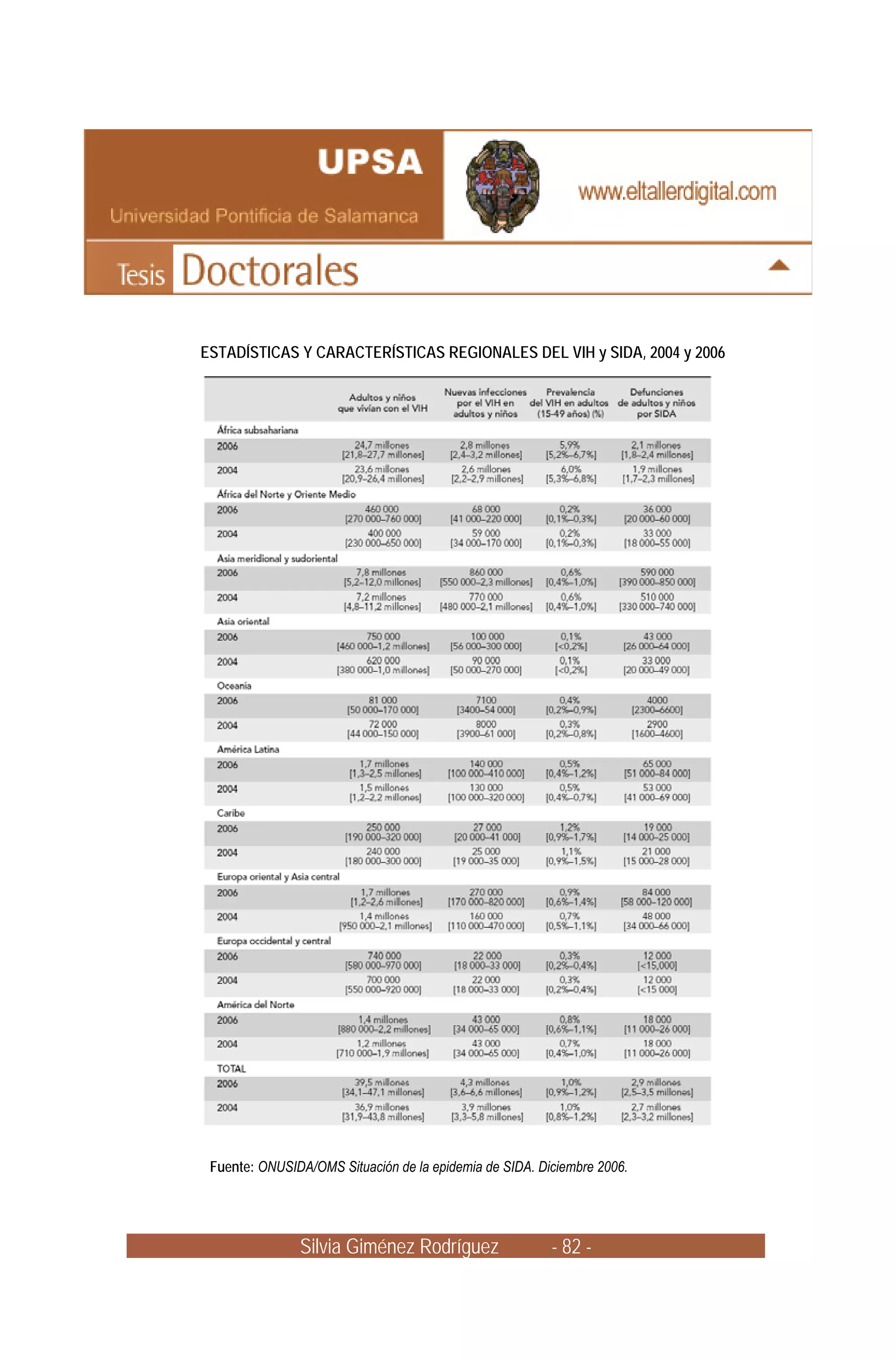 El documento resume las estadísticas y características regionales del VIH y SIDA en 2004 y 2006. En todo el mundo hay más mujeres que nunca viviendo con el VIH, especialmente en África subsahariana donde el 59% de las personas con VIH son mujeres. Aunque el acceso al tratamiento ha aumentado, todavía está en un nivel bajo en muchos países. Los comportamientos de riesgo como el consumo de drogas intravenosas y las relaciones sexuales sin protección son especialmente importantes en la propagación del VIH en Asia, Europa del Este y América