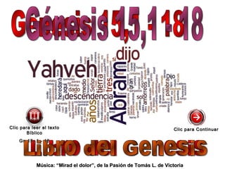 El documento resume el capítulo 15 del Génesis, en el cual Dios le promete a Abraham que lo hará padre de una gran nación y le dará una tierra en posesión, a pesar de que Abraham aún no tiene hijos. Años más tarde, cuando Abraham expresa su duda de que se cumpla la promesa, Dios hace una alianza con él y le asegura que tendrá innumerables descendientes.