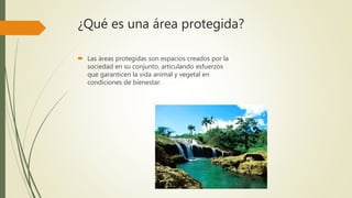 Las áreas protegidas son espacios creados para garantizar el bienestar de la vida animal y vegetal y mantener la diversidad biológica del Perú. Para cuidar estas áreas, la sociedad debe unir esfuerzos para protegerlas y evitar que especies en peligro de extinción desaparezcan.