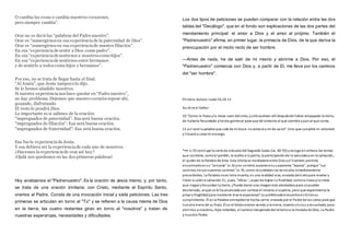 El documento analiza la oración del Padre Nuestro enseñada por Jesús, que invita a los creyentes a dirigirse a Dios como "Padre" y establecer una relación de confianza, amor y cercanía con Él. La oración comienza adorando a Dios y pidiendo por Su Reino antes que por las necesidades propias, las cuales deben reducirse a lo esencial. Jesús también enfatiza la importancia de perdonar a los demás para ser perdonados por Dios.