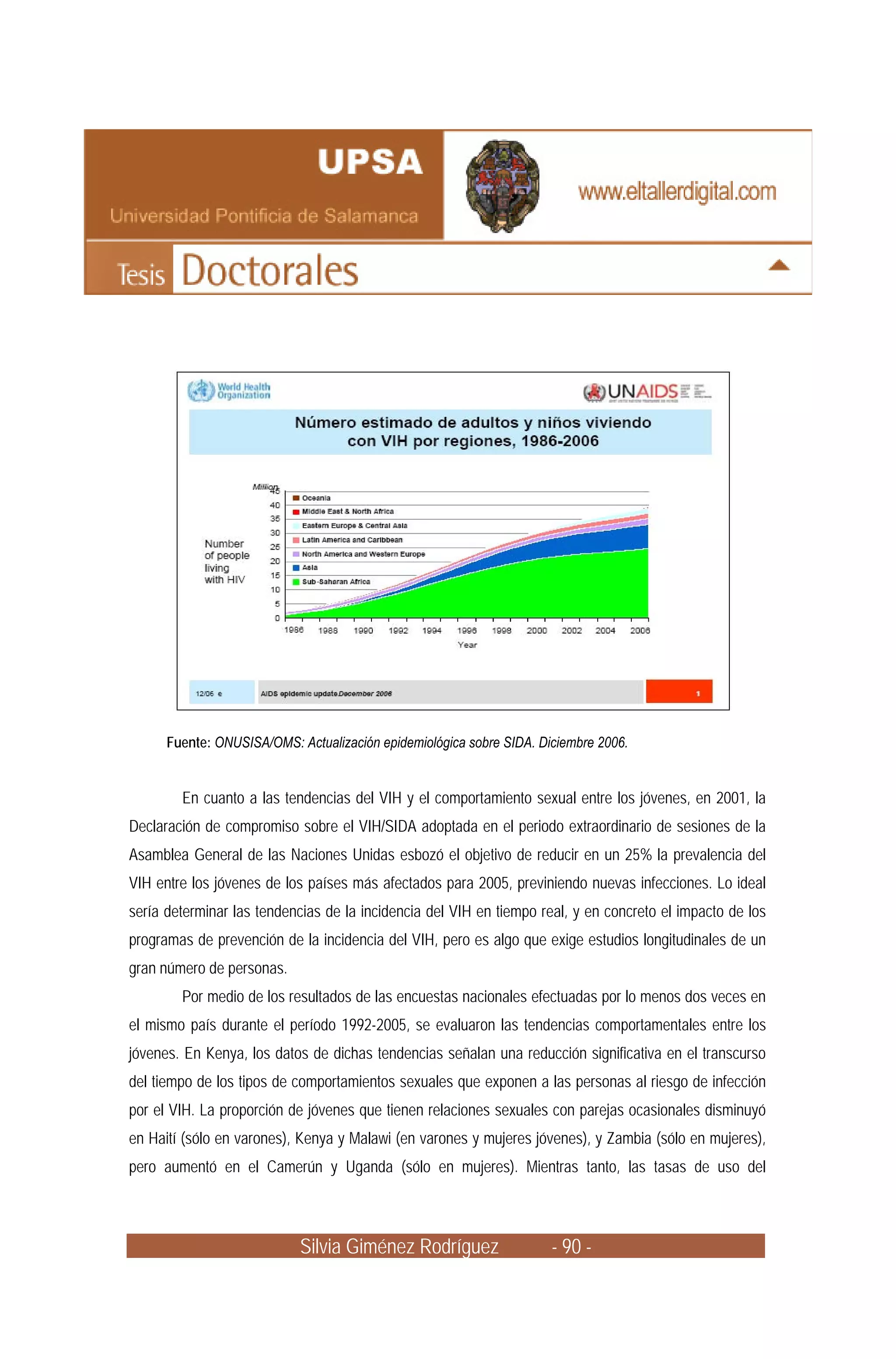 El documento resume las tendencias del VIH y el comportamiento sexual entre los jóvenes según datos de encuestas nacionales entre 1992-2005. Muestra que en algunos países africanos se redujeron comportamientos de alto riesgo mientras aumentó el uso de preservativos, aunque en otros aumentaron tanto los riesgos como la protección. Señala que son pocos los países que proporcionaron amplios datos de tendencias entre jóvenes y que es necesario ampliar la vigilancia del VIH.
