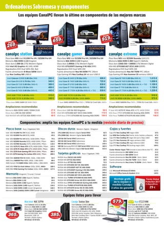 Este documento presenta una oferta de financiación de 600 euros a pagar en 12 meses sin intereses de una tienda de informática. Incluye ejemplos de equipos de sobremesa, portátiles y componentes, con sus especificaciones y precios. También ofrece servicios como montaje gratuito y 2 años de garantía.