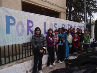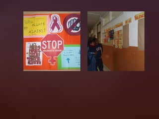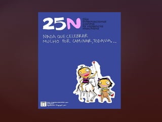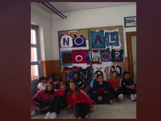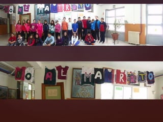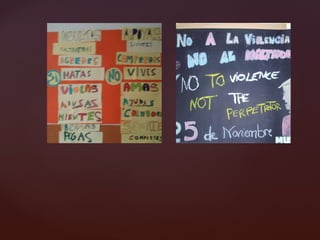 El documento describe las actividades realizadas por una escuela para conmemorar el Día Internacional contra la Violencia hacia las Mujeres. Se proyectó la película "Antonia" para estudiantes de ciclos formativos y bachillerato nocturno. Los estudiantes de primer año de bachillerato participaron en dos actividades organizadas por el Centro Municipal de Información a la Mujer, incluyendo la proyección de la película "La vida soñada de los ángeles". El departamento de plástica creó varios murales con diferentes técnic
