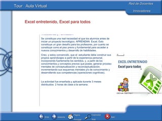 El documento describe un proyecto para enseñar Excel a estudiantes de 13 a 14 años utilizando el tenis de mesa como contexto motivador. Los estudiantes aprendieron significativamente a crear fórmulas y macros en Excel para recrear el juego de manera lúdica. Como resultado, los estudiantes crearon sus propios juegos digitales en Excel y los donaron a cursos más jóvenes.