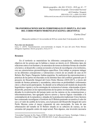 Este documento analiza las diferentes concepciones y disputas en torno al proyecto de urbanización del cerro Perito Moreno en El Bolsón, Argentina. Por un lado, algunos ven la urbanización como una oportunidad para impulsar el desarrollo turístico de la región. Por otro lado, otros la ven como una amenaza al ambiente y su forma de vida actual. El documento explora cómo estas diferentes visiones reflejan concepciones contrapuestas sobre el desarrollo y la relación entre humanos y naturaleza. Finalmente, la disputa en torno a este