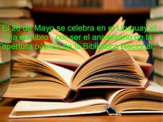 El 26 de mayo se celebra en Uruguay el Día del Libro, que conmemora la apertura pública de la Biblioteca Nacional el 26 de mayo de 1816. La Biblioteca Nacional fue instalada originalmente en el Fuerte de Montevideo, donde tenía su sede el gobernador, y Juan Manuel Blanes Larrañaga fue designado como su primer director.