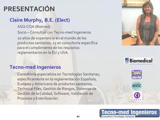 Este documento discute los requisitos reglamentarios para software médico. Explica que existe una complejidad creciente debido a la convergencia de tecnologías de la información y electrónica médica. También presenta las directrices MEDDEV 2.1/6 para determinar si un software cae dentro o fuera del alcance de las directivas de dispositivos médicos y de diagnóstico in vitro. Además, destaca la importancia de pedir al proveedor que se haga responsable del producto de software y establezca un plan de mantenimiento claro