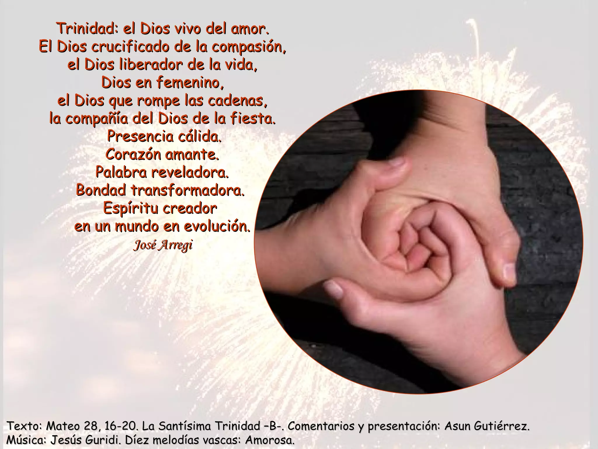 Este documento presenta una reflexión sobre la Santísima Trinidad desde diferentes perspectivas. Celebra a Dios como amor, compasión, liberación y presencia cálida. Explica que celebrar la Trinidad significa ofrecer amistad, construir humanidad, cultivar el perdón y promover la justicia. También resume el pasaje bíblico de Mateo donde Jesús encarga a los discípulos que vayan y hagan discípulos a todas las naciones bautizándolos en el nombre del Padre, del Hijo y del Espíritu S