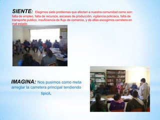 Los estudiantes de la Escuela Telesecundaria "Juan Escutia" identificaron siete problemas en su comunidad, incluyendo mal estado de las carreteras. Decidieron como meta arreglar la carretera principal echando grava. Con el apoyo de padres de familia, ejidos y autoridades municipales, los estudiantes llevaron a cabo con éxito el proyecto para mejorar las condiciones de la carretera y promover el progreso de la comunidad. El presidente del comité agradeció a todos por su apoyo para que el sueño de