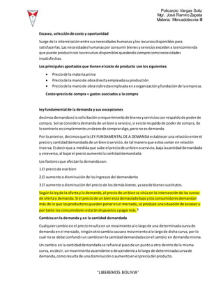 Este documento resume los conceptos fundamentales de la demanda. Explica que la demanda se refiere al comportamiento de los compradores y su relación con el precio y la cantidad de un bien. También describe la ley de la demanda, que establece que existe una relación inversa entre el precio y la cantidad demandada de un bien. Por último, analiza conceptos como elasticidad de la demanda, tipos de curvas de demanda, y equilibrio del consumidor.