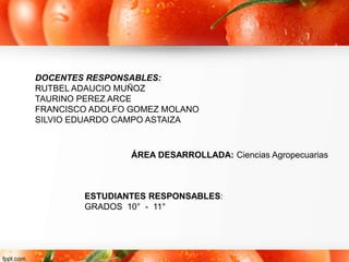 El documento describe un proyecto de una granja integral en una escuela para cultivar tomates. Los objetivos del proyecto son desarrollar habilidades agrícolas en los estudiantes para mejorar la nutrición familiar, restablecer la producción de hortalizas, y aplicar técnicas sostenibles. Las actividades incluyen preparar el terreno, plantar semilleros, establecer riego, trasplante, cosecha y evaluación. Los resultados son generación de ingresos, mejor nutrición, rescate de la cultura de huertas, y apre