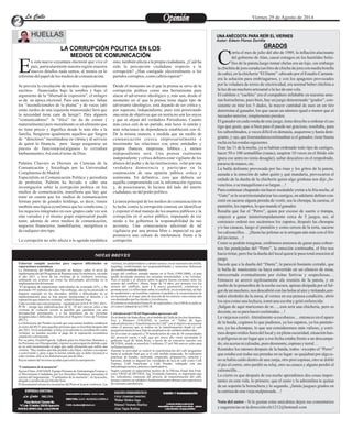 El documento resume tres noticias principales: 1) Un consejero regional advierte sobre más de 40 obras paralizadas en toda la región. 2) El Jurado Nacional de Elecciones verá un caso de una regidora denunciada por nepotismo. 3) Los candidatos a la alcaldía de Huamanga fueron más omisos al consignar sentencias. También incluye una opinión sobre la corrupción política en los medios de comunicación.