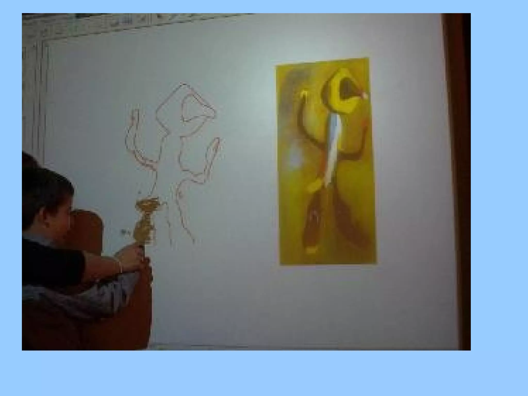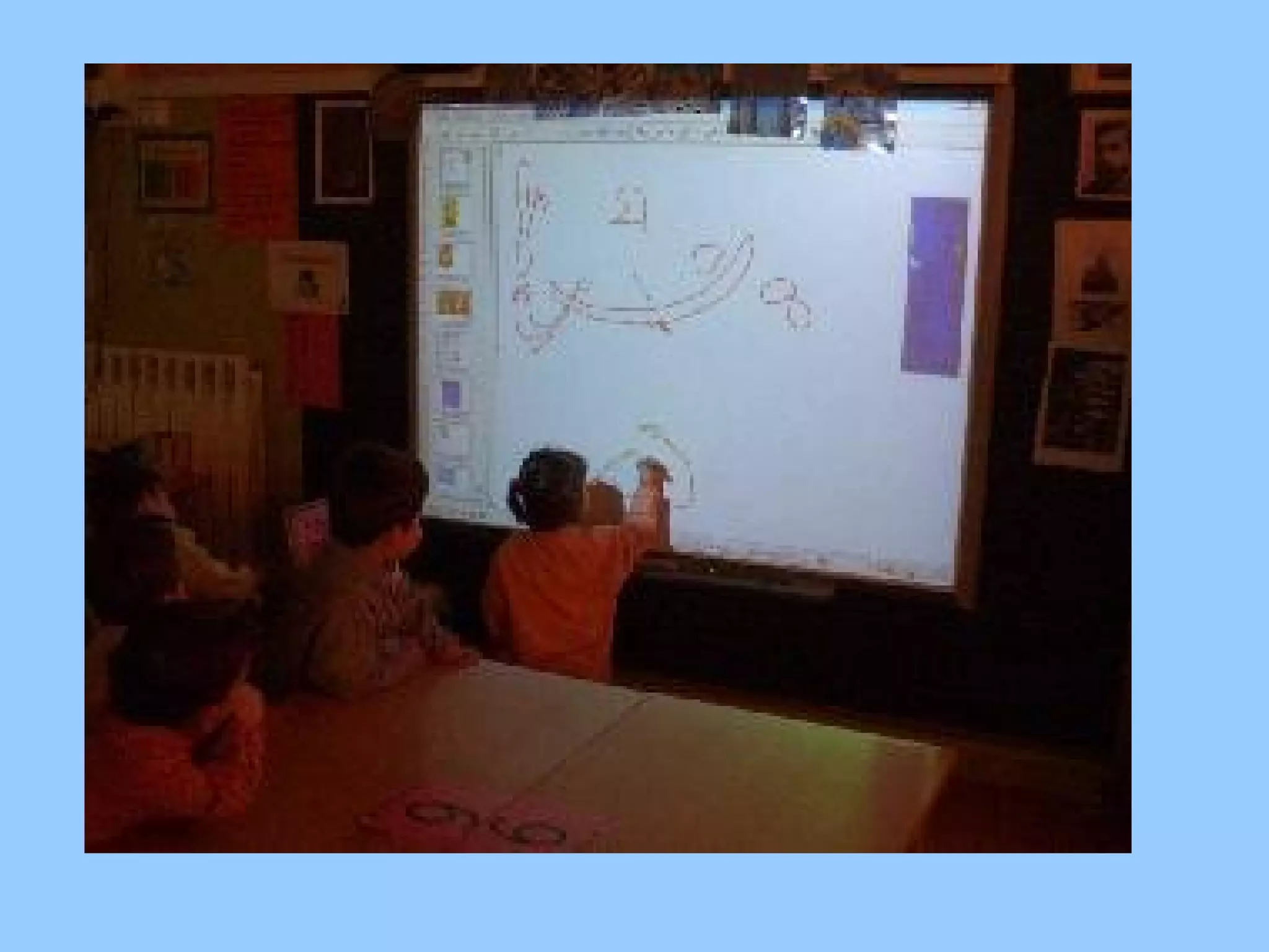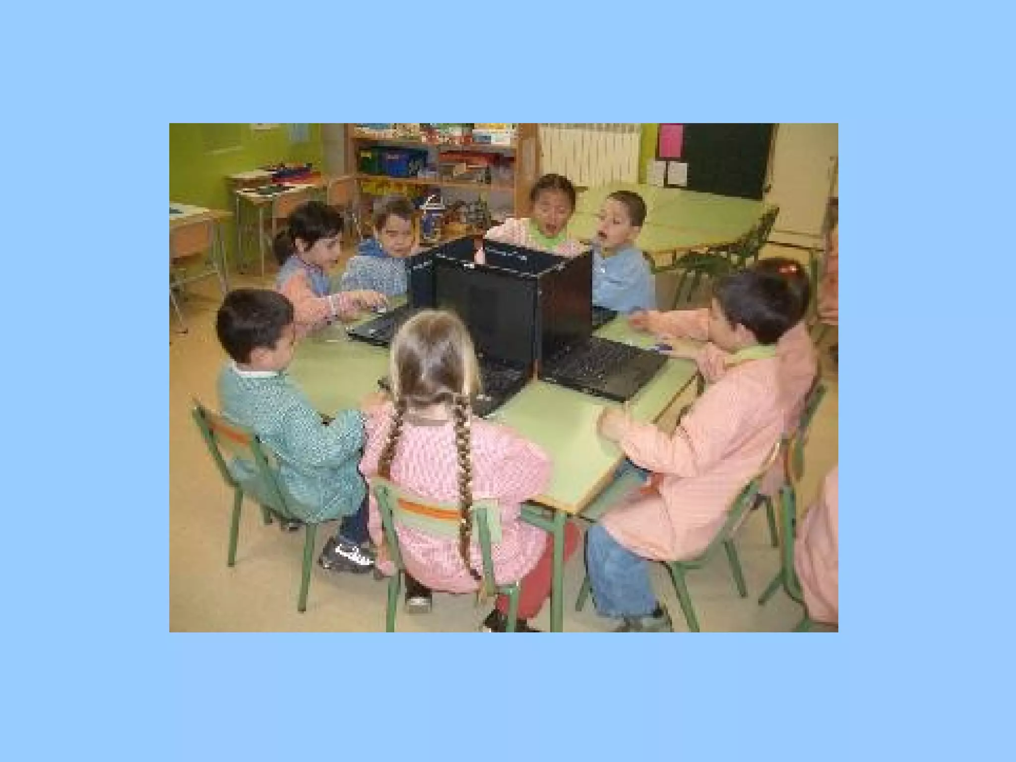 El documento describe varias actividades que involucran el uso de tecnología en una escuela infantil. Los estudiantes de P3 están haciendo una actividad sobre Miró y mirando imágenes de sus cuadros antes de una excursión. Los estudiantes de P4 están trabajando en conceptos matemáticos y los de P5 están usando portátiles, un ordenador fijo y material manipulable para trabajar en lenguaje matemático. También hay un armario móvil equipado con ruedas para transportar equipos como portátiles, proyectores y