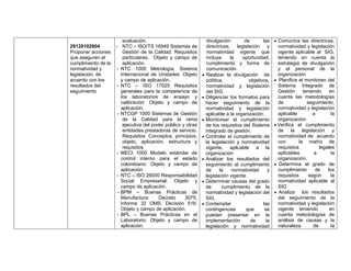 Este documento presenta una lista de normas y legislaciones aplicables a sistemas de gestión como la calidad, medio ambiente y seguridad y salud ocupacional. También describe conceptos clave relacionados con la normatividad y legislación vigente, y procesos para identificar, actualizar, divulgar, monitorear y asegurar el cumplimiento de los requisitos legales en una organización.