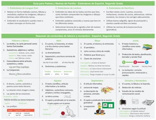 Este documento proporciona información sobre los estándares educativos de español para estudiantes de segundo grado en Honduras. Detalla las habilidades que los estudiantes deben dominar en lectura, escritura y lenguaje oral en cada mes del año escolar, e incluye recomendaciones para que los padres apoyen el aprendizaje de sus hijos en casa.