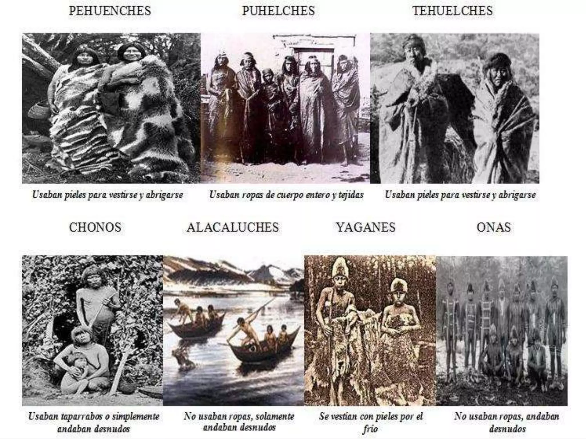 Los documentos describen a los pueblos indígenas originarios de Chile, incluyendo a los changos que habitaban el litoral norte de Chile y cazaban lobos marinos desde balsas de cuero. También describen a los mapuches, el pueblo indígena más numeroso de Chile que se organizaba tribalmente y se dedicaba a la agricultura itinerante.