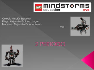 El documento describe las diferentes capacidades sensoriales y funciones de un robot Lego Mindstorms NXT, incluyendo sensores táctiles, acústicos, fotosensibles y ultrasónicos para detectar obstáculos y sonido. También describe cómo las lámparas pueden usarse para crear patrones de luz y activar sensores, y cómo la tecnología Bluetooth permite la comunicación inalámbrica entre el robot y otros dispositivos.