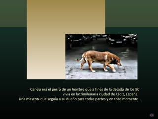 Canelo era un perro leal que esperó durante 12 años en la puerta de un hospital en Cádiz, España, tras la muerte de su dueño, quien falleció durante un tratamiento de diálisis. A pesar de la insistencia del personal y vecinos para que se fuera, Canelo nunca abandonó su lugar, simbolizando un amor inquebrantable. Su historia conmovió a la comunidad, que honró su memoria poniendo su nombre a un callejón cercano al hospital.