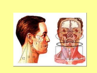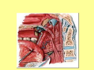 El documento detalla la anatomía de los espacios cervicofaciales y mandibulares, así como la progresión de las infecciones odontógenas. Se describen síntomas y signos que aparecen en estas infecciones, junto con las opciones de tratamiento tanto médicas como quirúrgicas. También se mencionan complicaciones potenciales que pueden surgir si no se tratan adecuadamente.