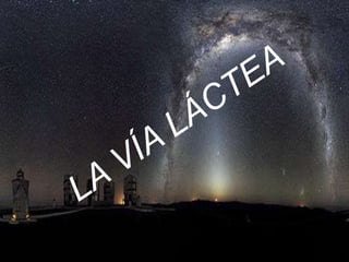 La vía láctea es la galaxia a la que pertenece el sistema solar y está compuesta por aproximadamente 100.000 millones de estrellas, incluyendo estrellas similares a nuestro Sol que podrían tener planetas. Tiene forma de disco con el Sol cerca del borde, y cuando vemos la franja blanquecina en el cielo nocturno estamos observando de perfil el disco de nuestra galaxia.