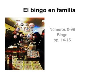 El documento presenta una guía para aprender los números en español del 0 al 99, incluyendo su pronunciación y ejemplos prácticos en un contexto de bingo. Además, se incluyen ejercicios relacionados con la cantidad de objetos y operaciones matemáticas simples. Concluye con actividades interactivas y una nota sobre el cumplimiento de las leyes de derechos de autor.