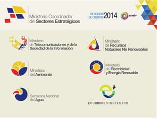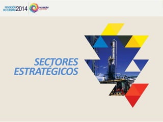 El documento describe los sectores estratégicos de la economía ecuatoriana, incluyendo petróleo, electricidad, telecomunicaciones, agua y medio ambiente. Se destaca que el gobierno ecuatoriano está invirtiendo en proyectos emblemáticos en estos sectores para aprovechar los recursos naturales de manera soberana y eficiente, mejorar la calidad de vida de las comunidades y sentar las bases para el futuro desarrollo del Ecuador.