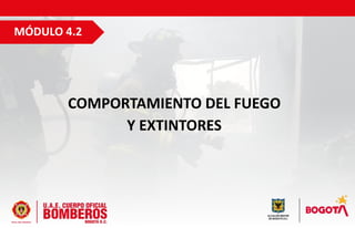 Este módulo describe el comportamiento del fuego y los diferentes tipos de extintores. Explica las clases de incendios (A, B, C, D, K) y los agentes extintores apropiados para cada clase. También cubre aspectos como las partes de un extintor, los anillos de verificación, la normatividad aplicable, y los procedimientos para la operación y ubicación correcta de los extintores.