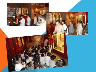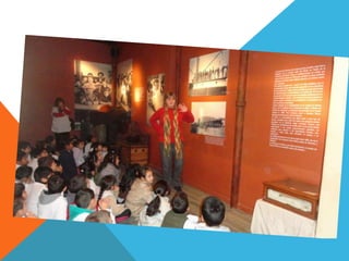 El documento resume la visita al Museo histórico del Banco Ciudad "Monte de Piedad", donde los estudiantes aprendieron sobre la historia de un inmigrante que viajó a Argentina para encontrar trabajo, cómo Monte de Piedad se usaba para intercambiar objetos de valor por dinero, y cómo ha avanzado la tecnología a lo largo del tiempo. También conocieron juegos y juguetes antiguos de antes de que existiera el plástico y cómo las muñecas de porcelana rotas iban al doctor de juguetes para ser re