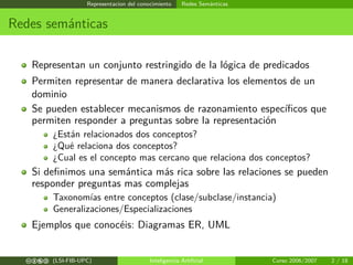 Los frames son redes semánticas estructuradas que representan conceptos mediante atributos y relaciones. Los frames dividen la información en una parte declarativa de atributos y una parte procedimental de métodos. Las relaciones conectan los frames y permiten la herencia de atributos entre conceptos relacionados.